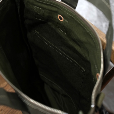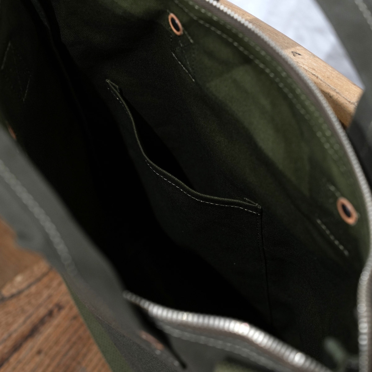 素材は、コットン100%のオリジナル10号キャンバス、パラフィンコーティング。