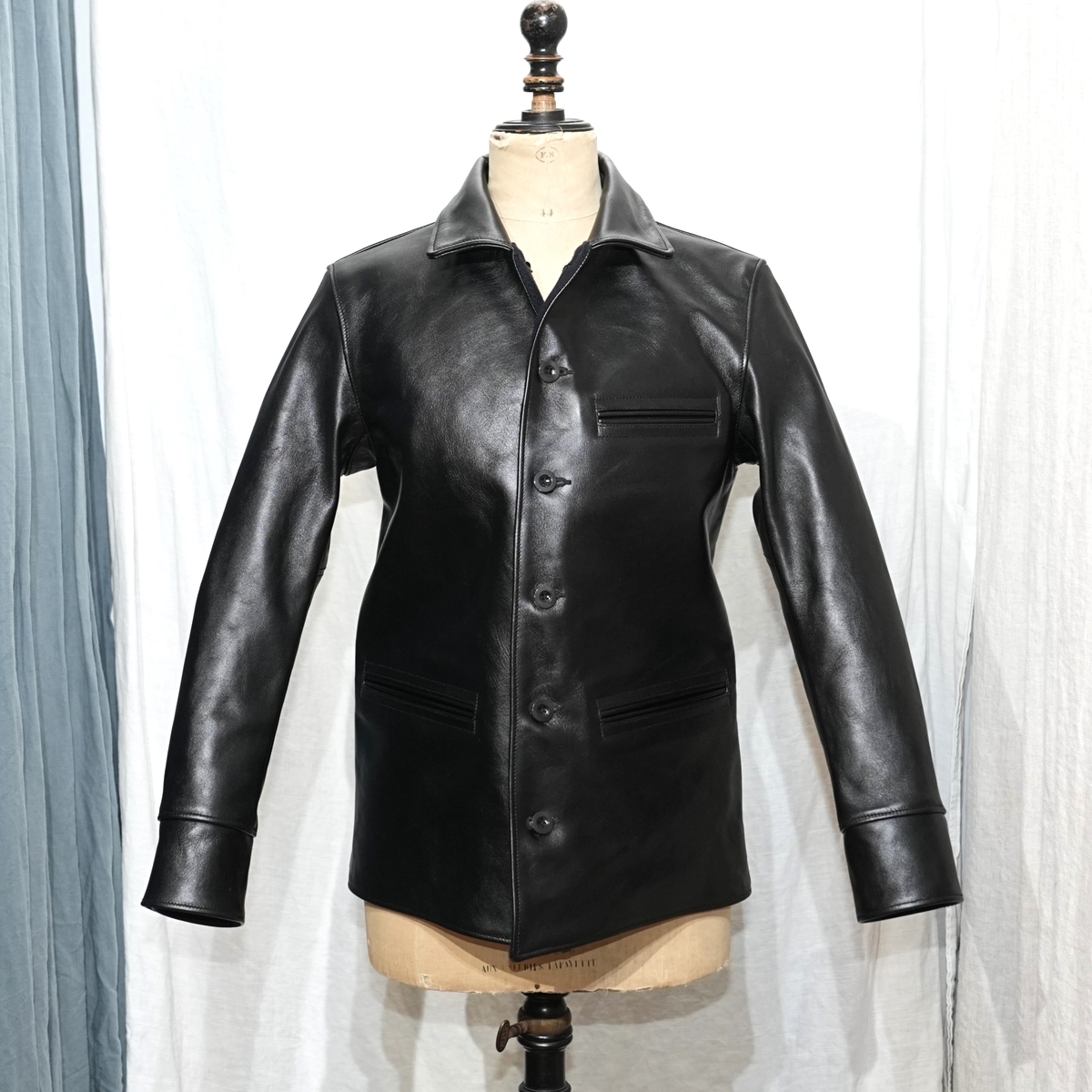 • コリンボハンティンググッズ ストックマンズ レザー コート ブラック ホースハイド