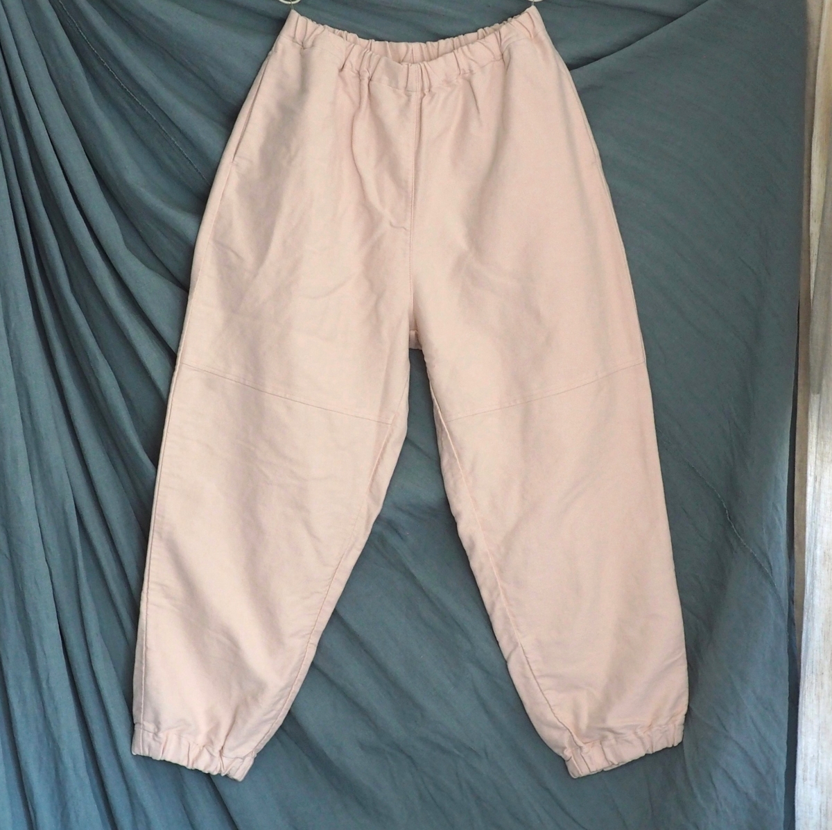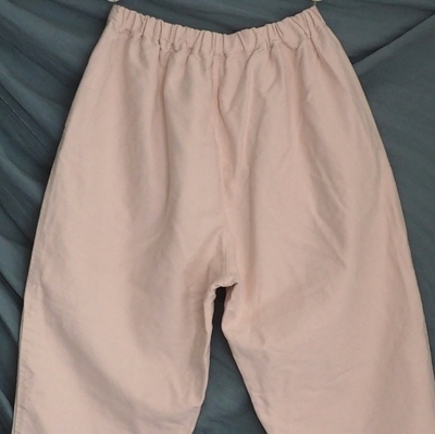 型は、ウェストがゴム仕様のリラックスパンツ。