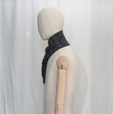 型は、短辺の片側が筒状(環状)になった、小さめのマフラー。