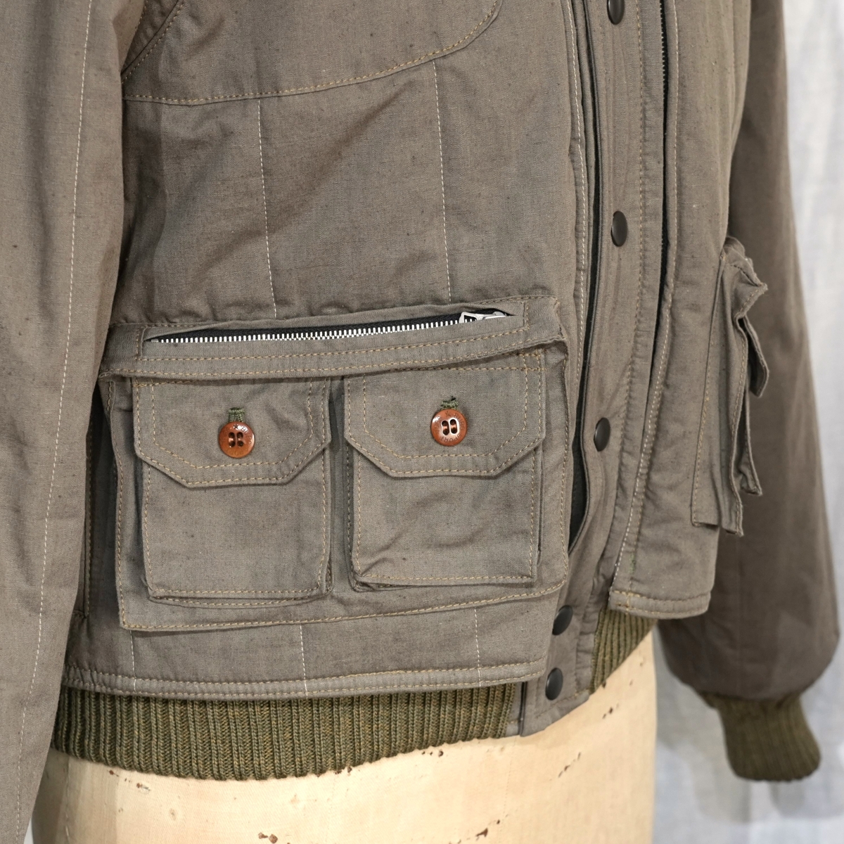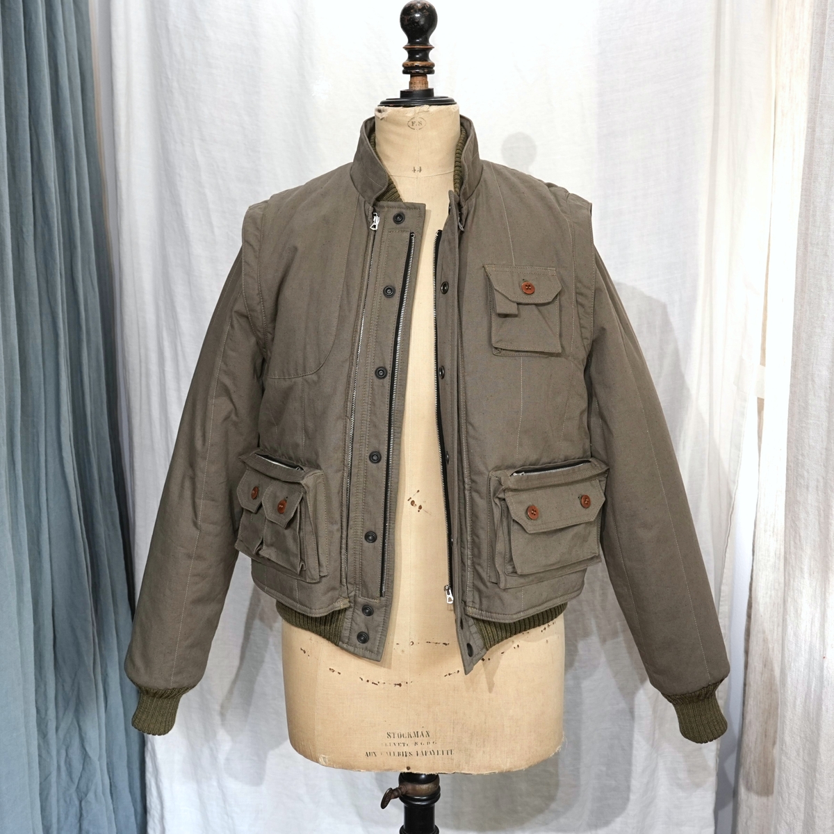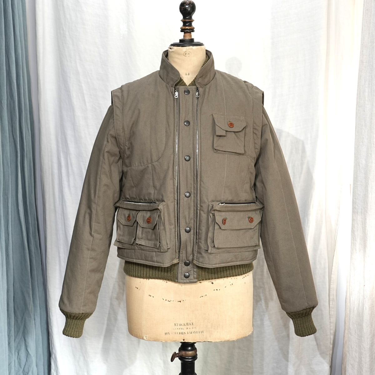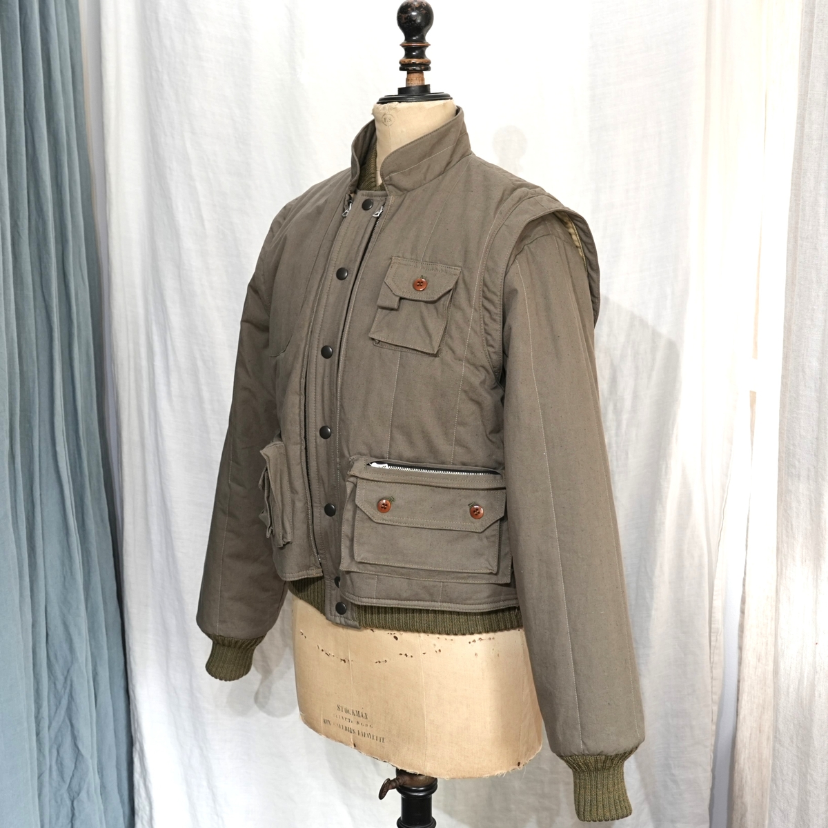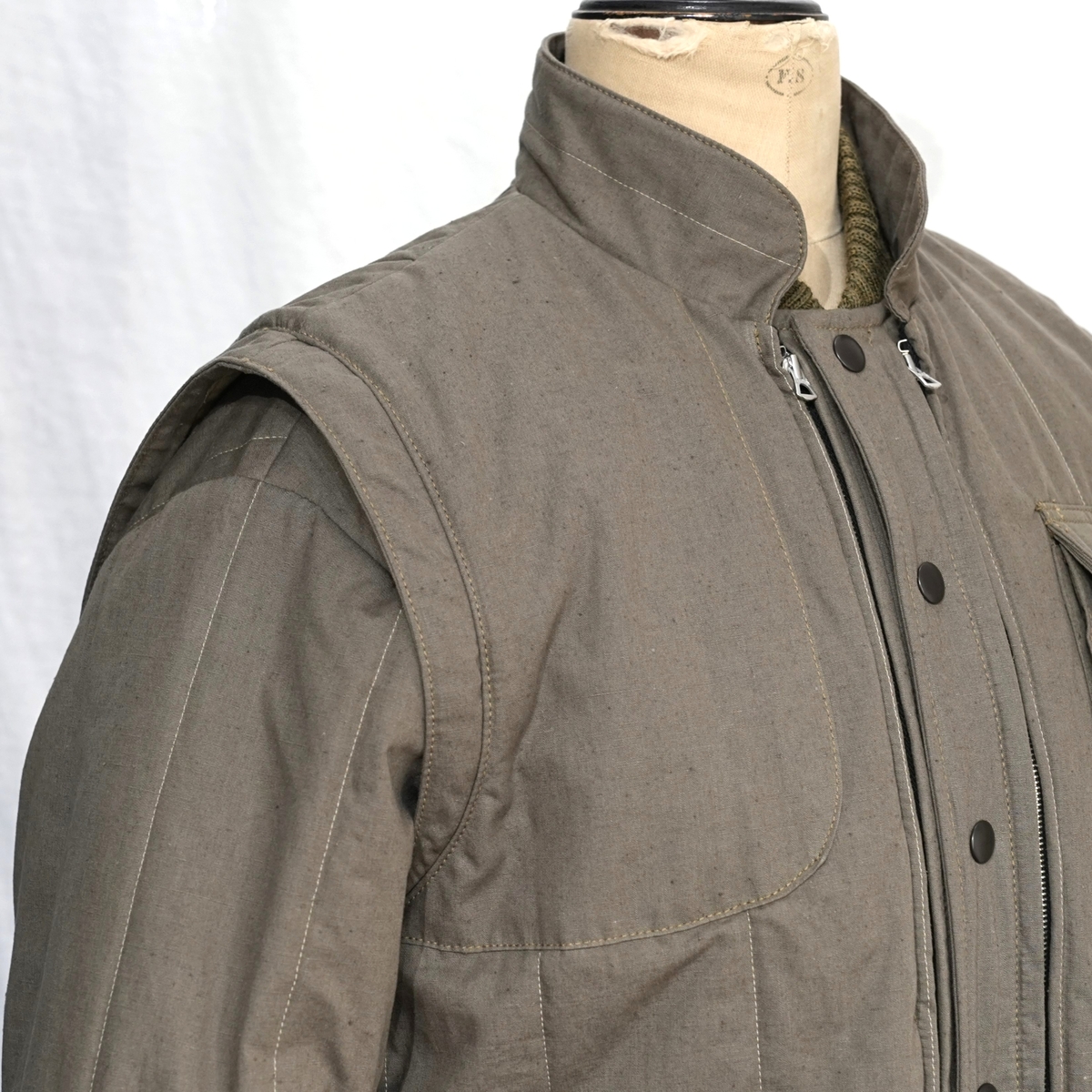 着脱式のベストが、ジャケット本体にジッパーで接続されます。