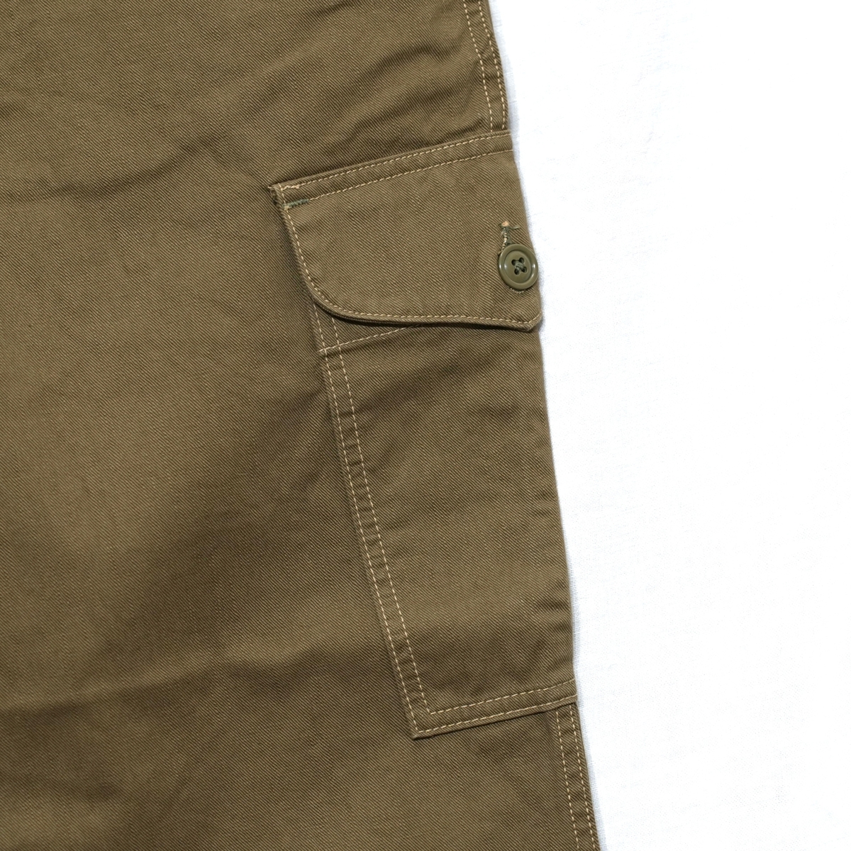 左腿外側に、フラップ付きパッチポケットが付きます。