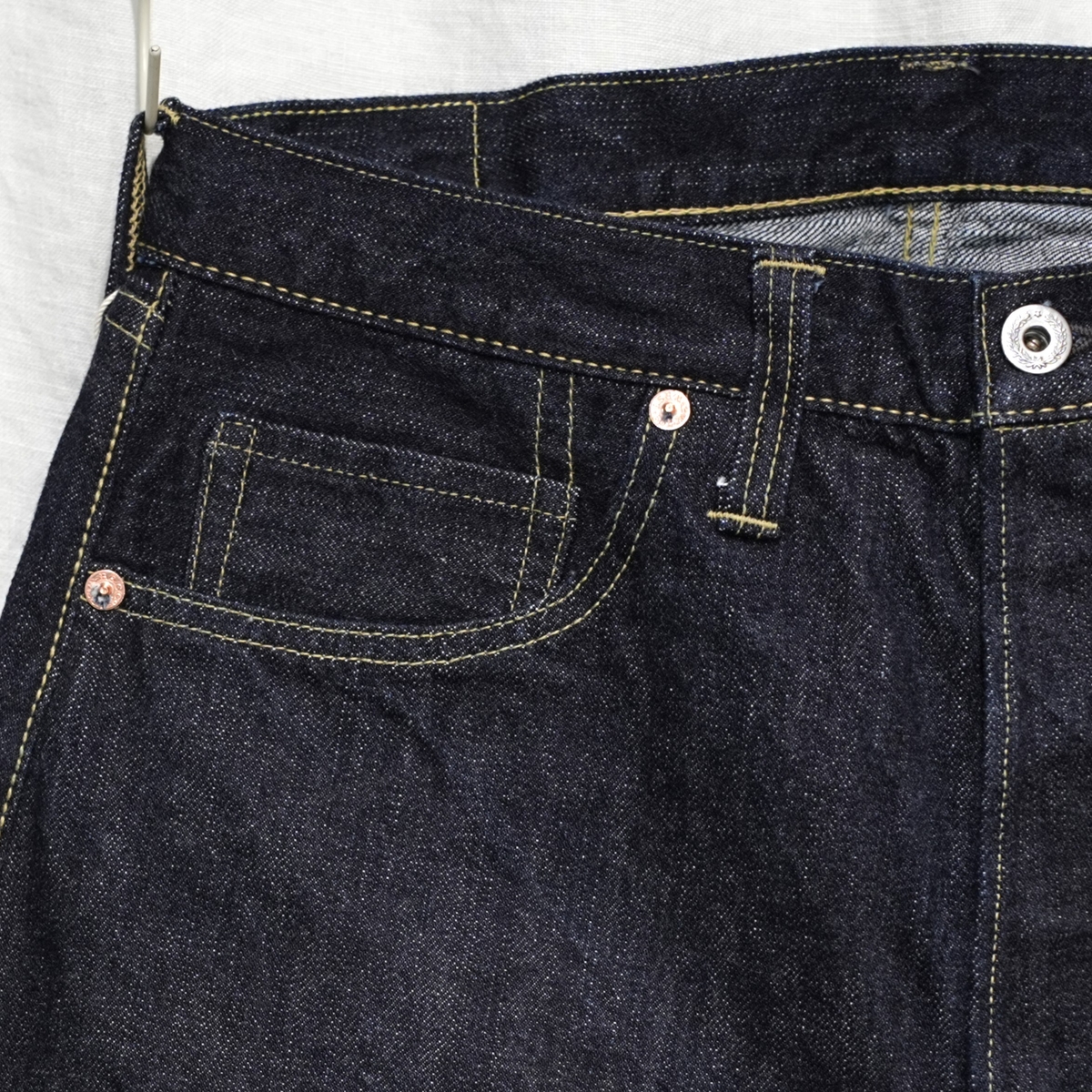 型は、大戦中期(1944-45 WW2)モデルをイメージした、5ポケットジーンズ。