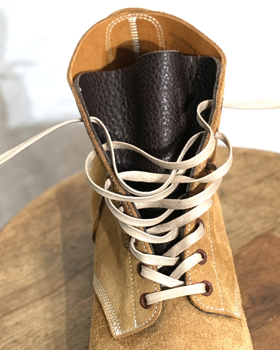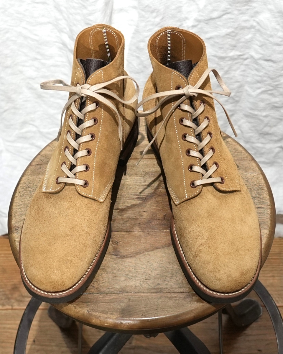 型は、MUNSONラストを日本人向けにモディファイしたオリジナルラストを用いた、7ホールのレースアップ、サービスブーツ。