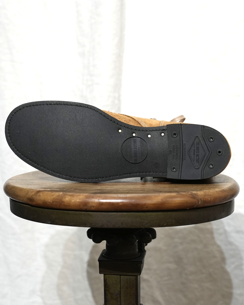 アウトソールにRDTオリジナル コルク ラバー ソール、ヒールにブーツファクトリーARヒール。