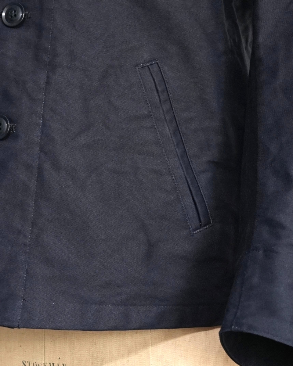 素材は、コットン100%の、墨コーティングインディゴモールスキン(weight about 360g/㎡)。