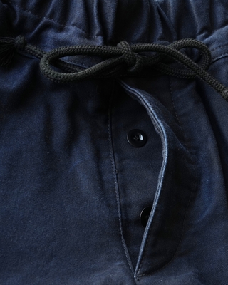 綿100%の厚手のモールスキンをインディゴ染めした後に