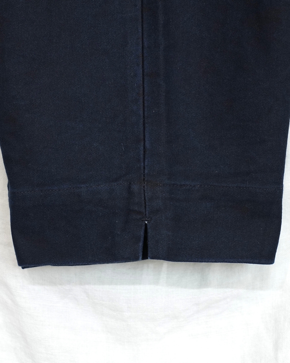 素材は、コットン100%の、墨コーティングインディゴモールスキン(weight about 360g/㎡)。