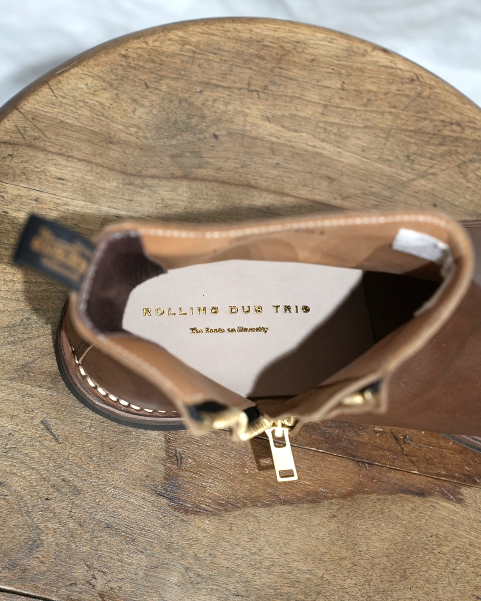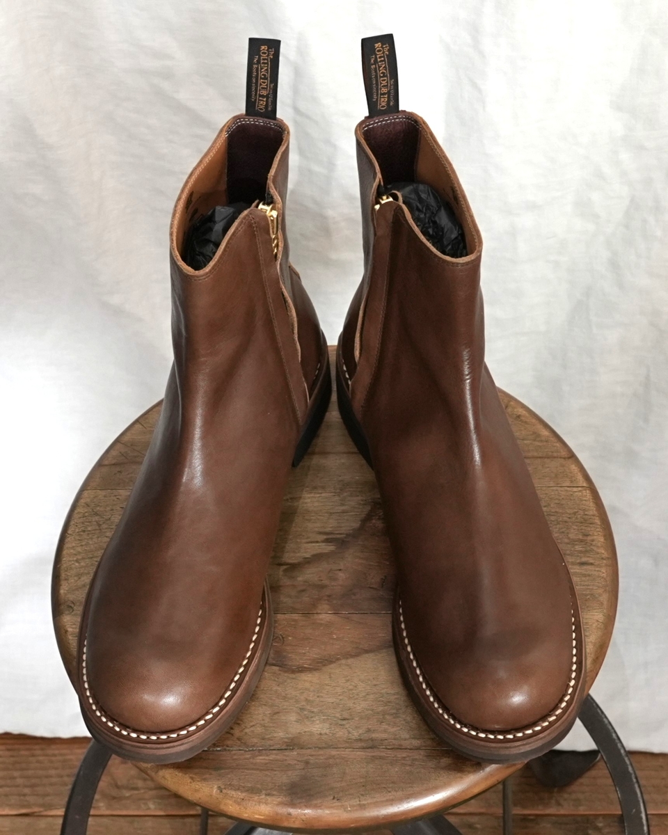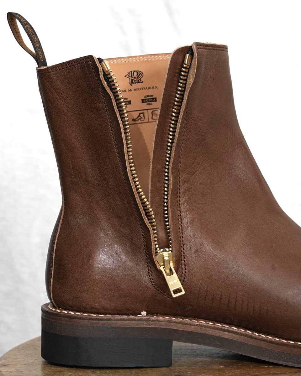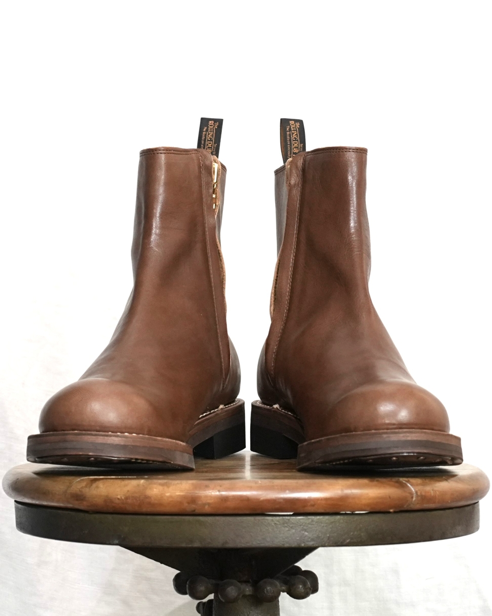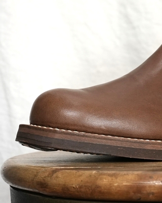素材は、アッパーにオリジナルホースハイド #1020(イタリア産馬原皮をタンニン鞣しし、日本で仕上げ)、