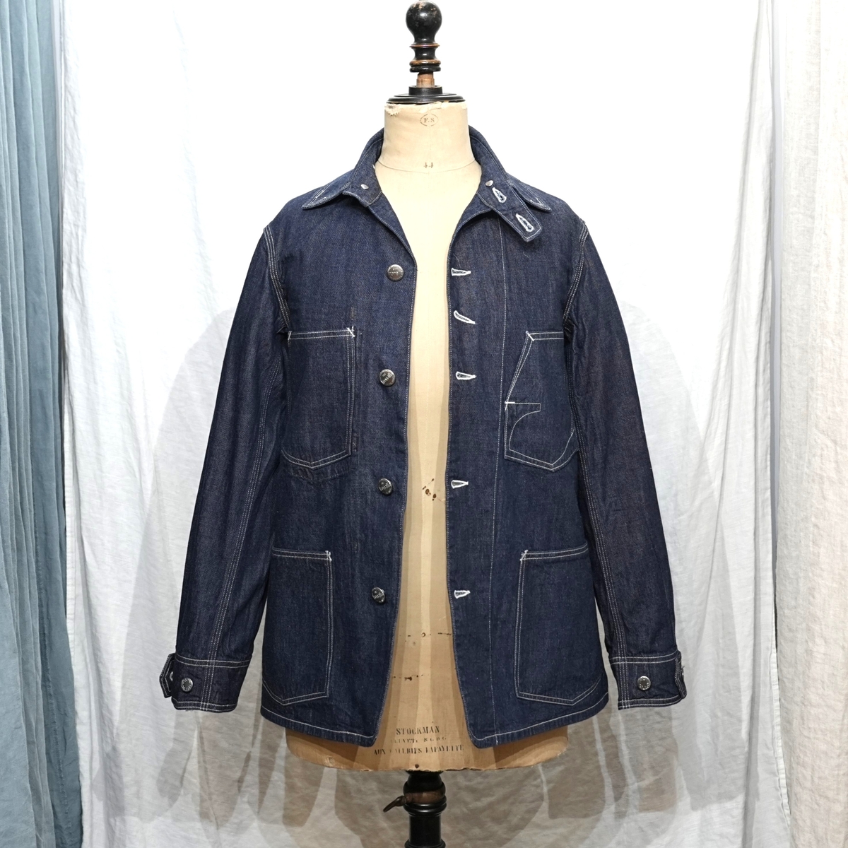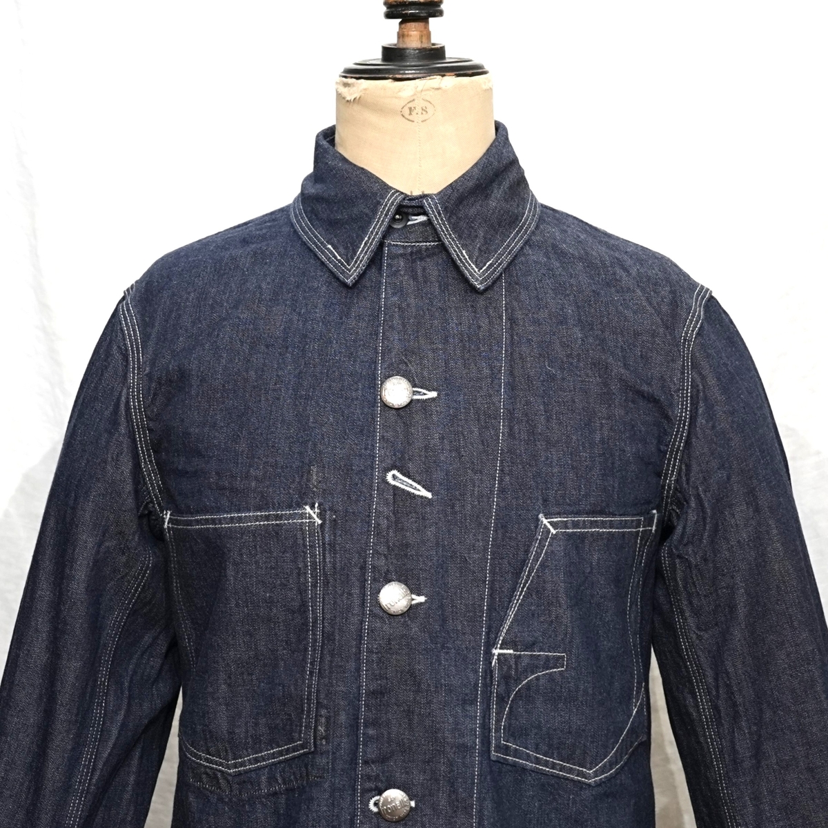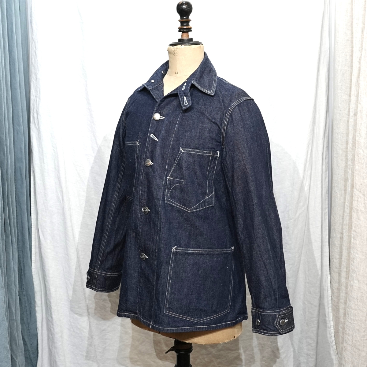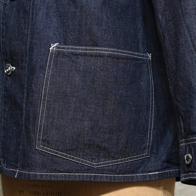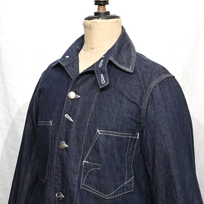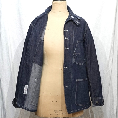 型は、1920~1930sスタイルの、チンストラップ付きチェンジボタン仕様のカバーオールジャケット。