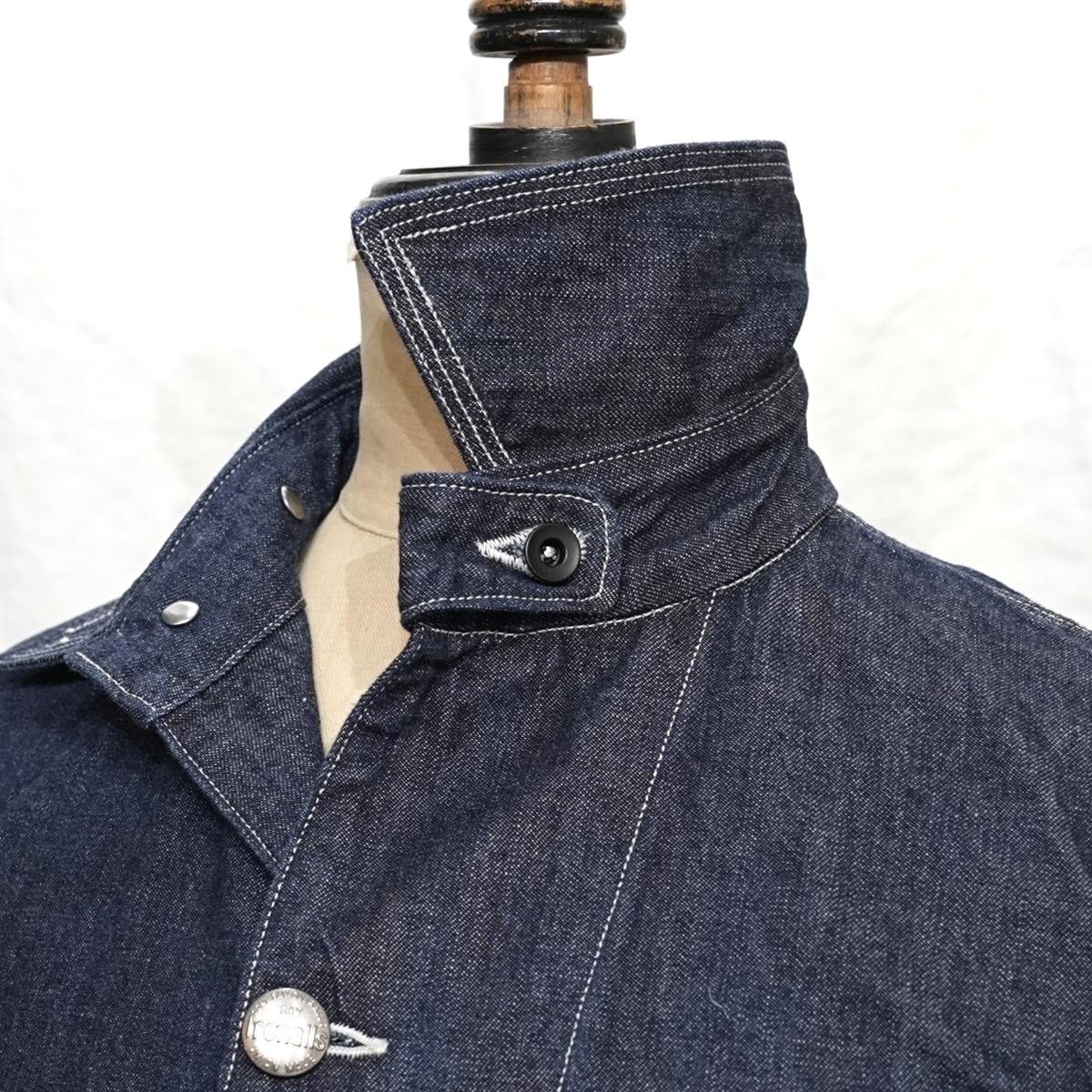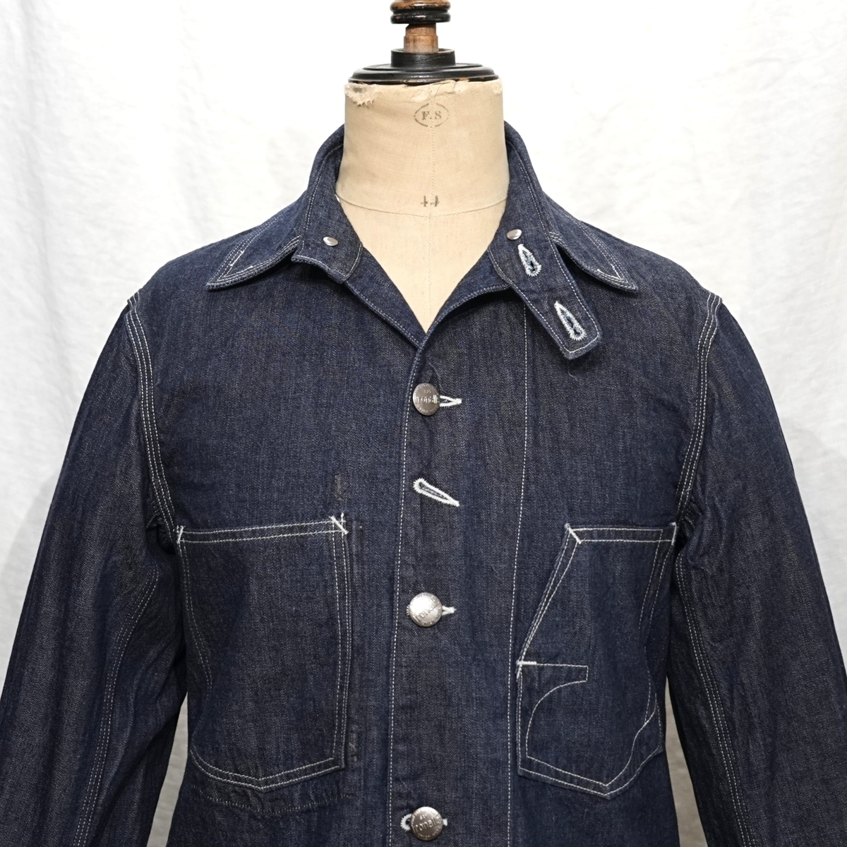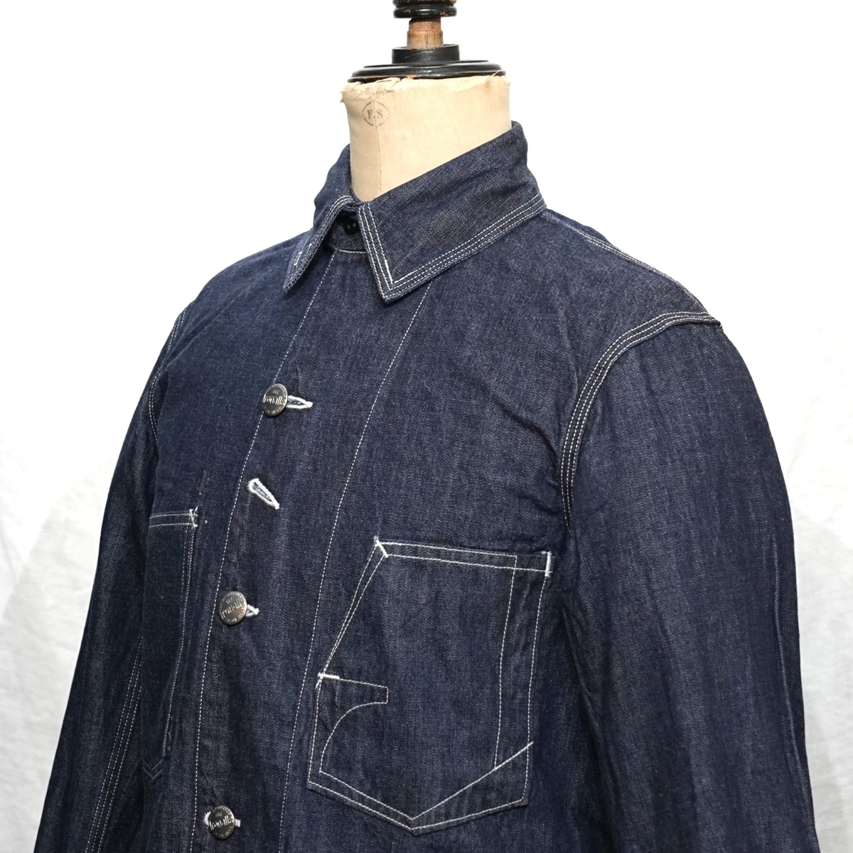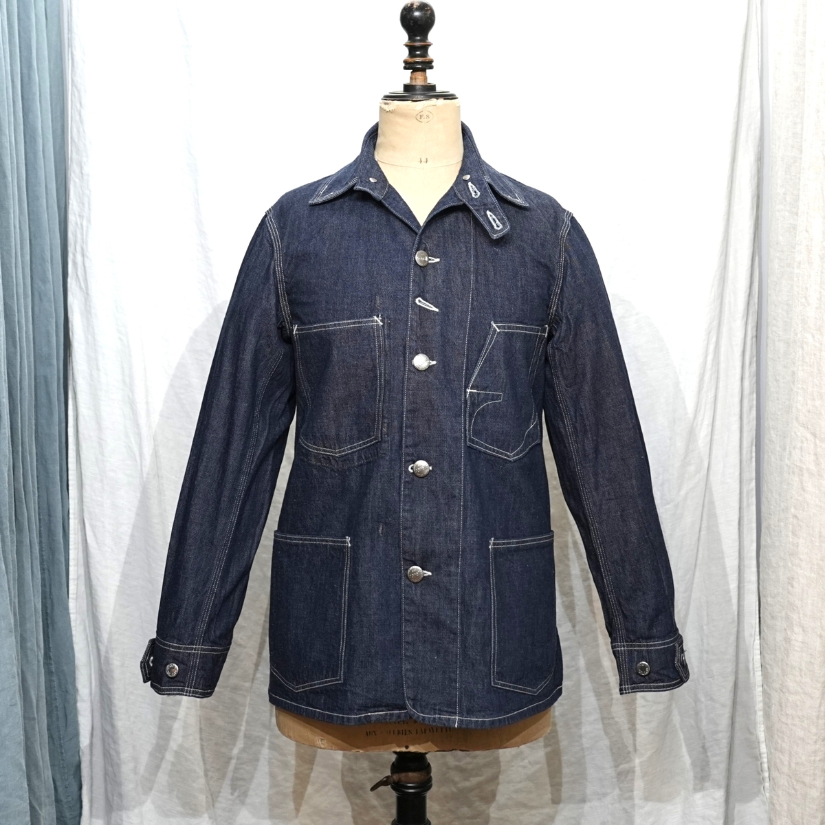 型は、1920~1930sスタイルの、チンストラップ付きチェンジボタン仕様のカバーオールジャケット。