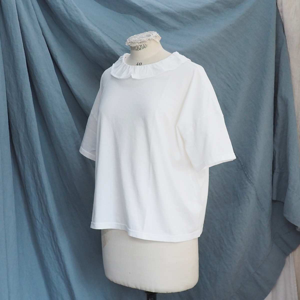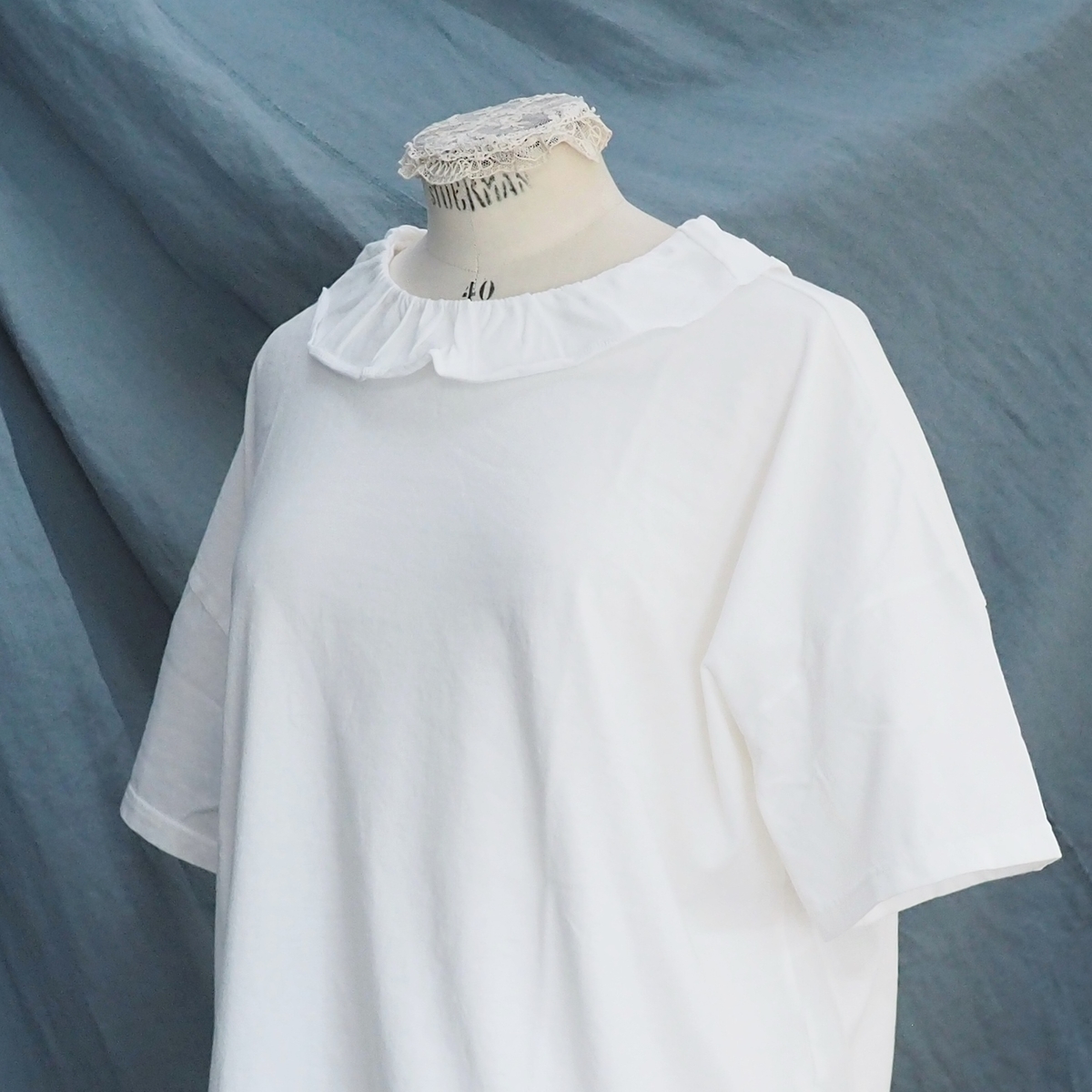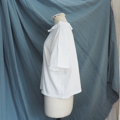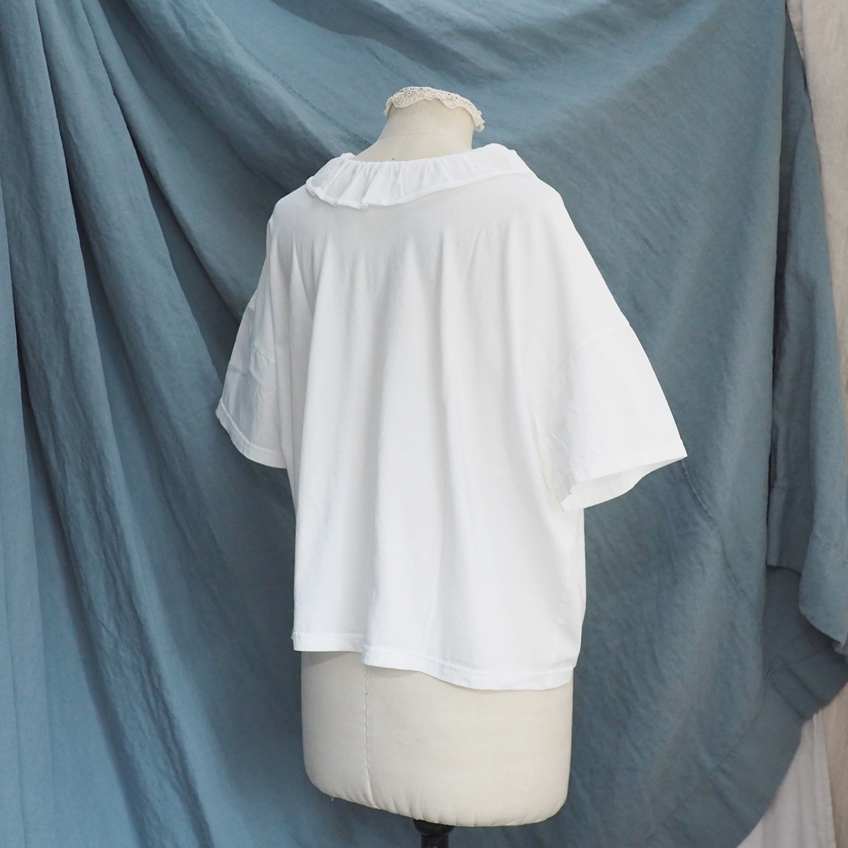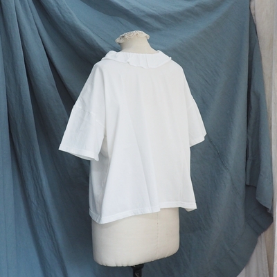 型は、フリルカラーの半袖Tシャツ。