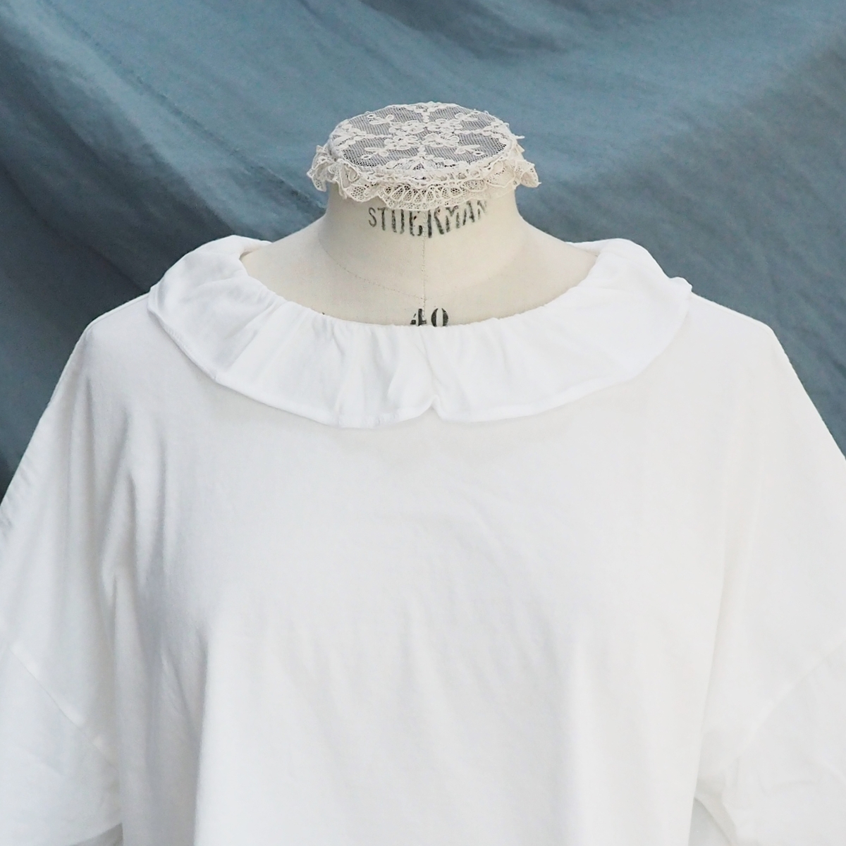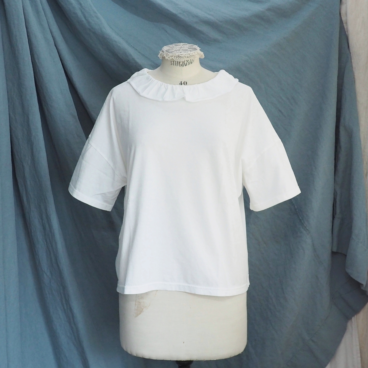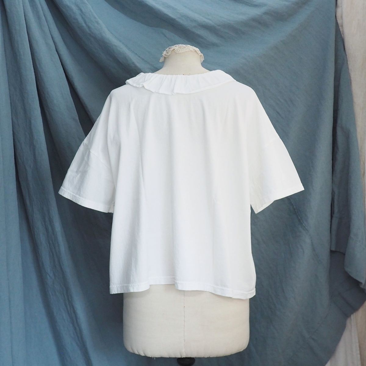型は、フリルカラーの半袖Tシャツ。