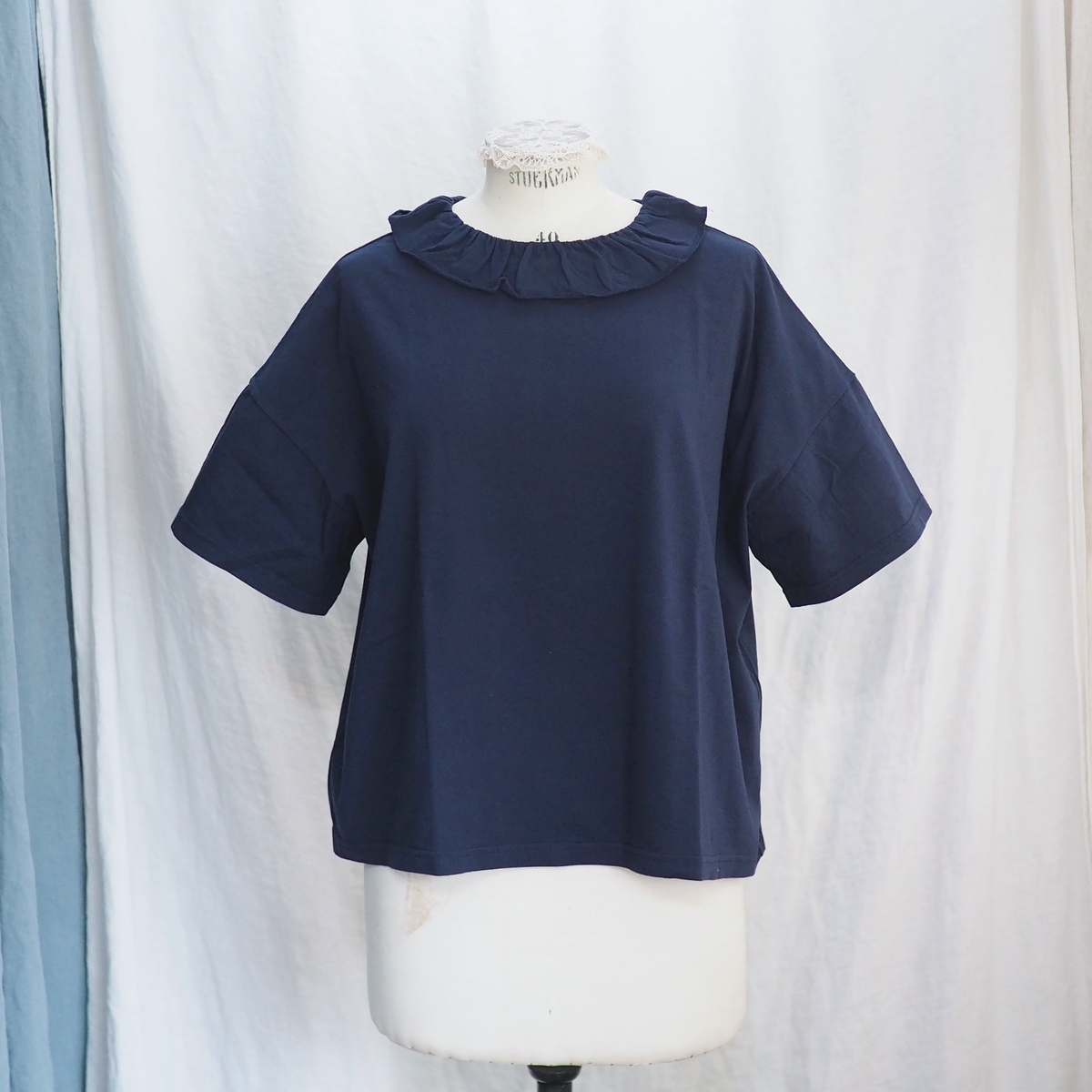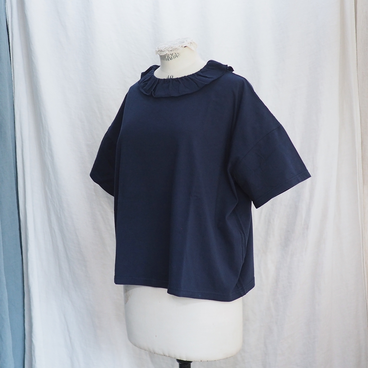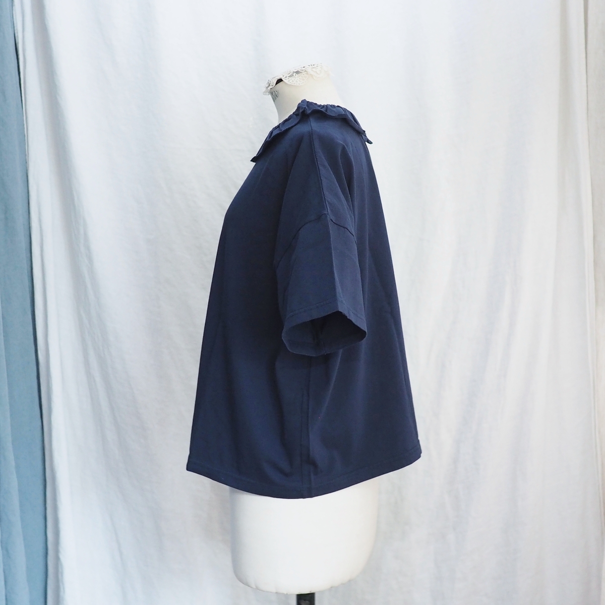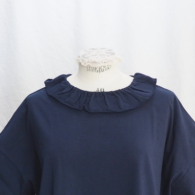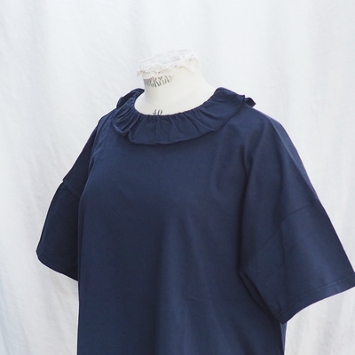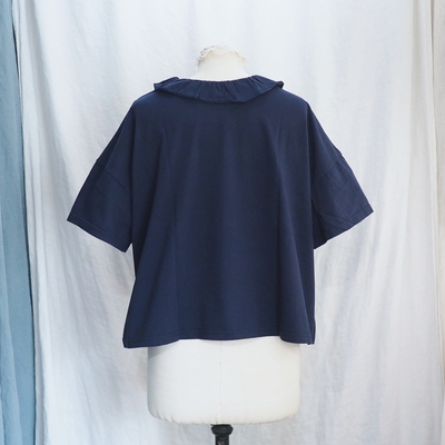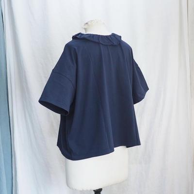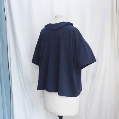 ホームスパン 30/1天竺 フリルカラー 半袖Tシャツ #6563 ネイビー