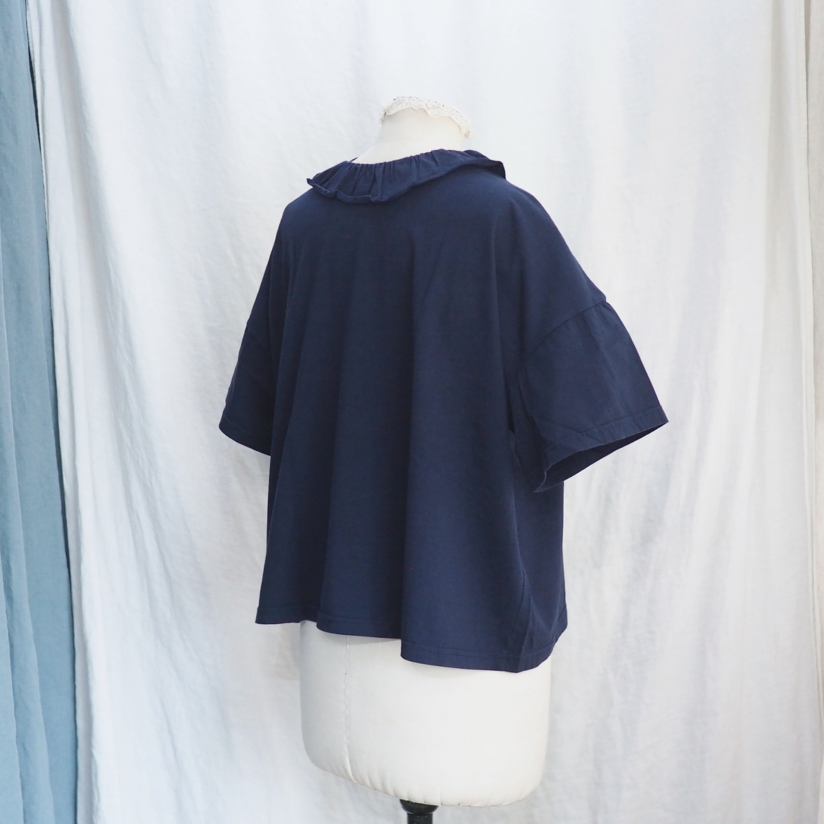 型は、フリルカラーの半袖Tシャツ。