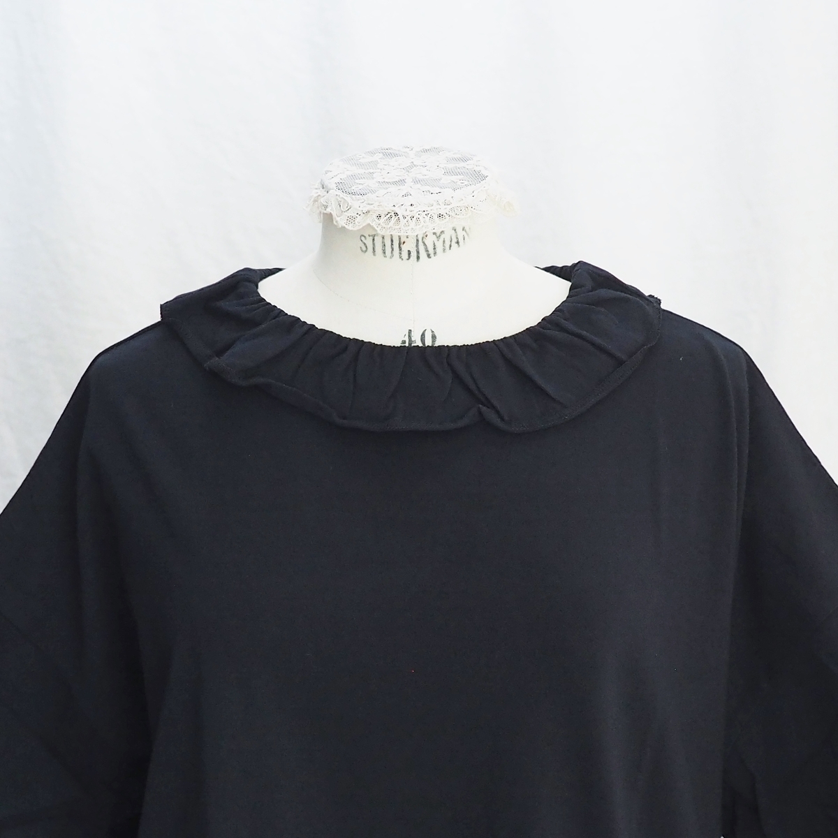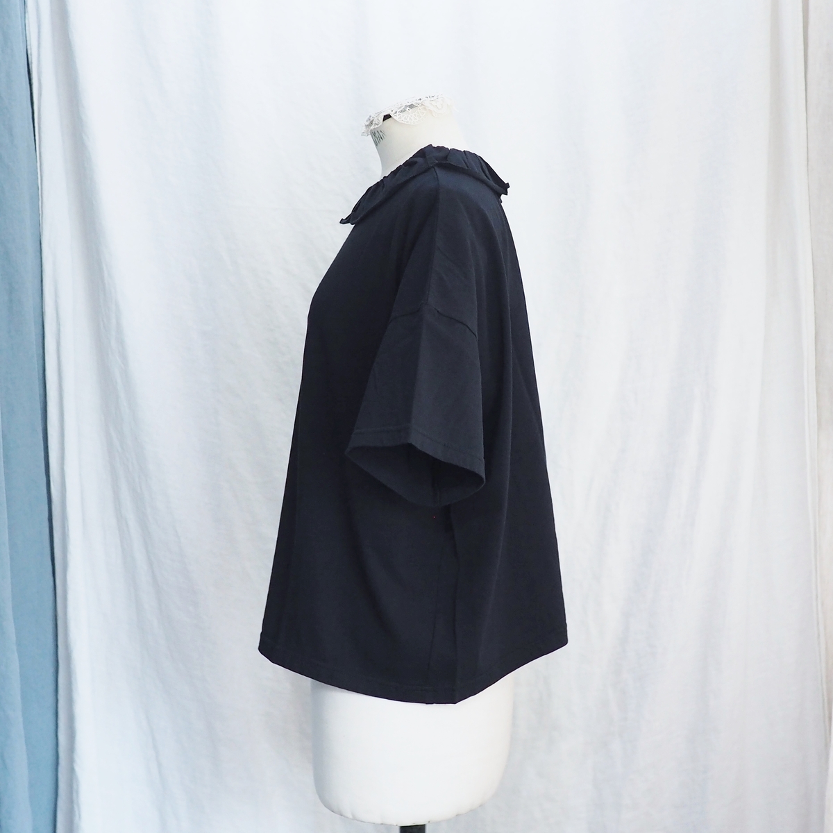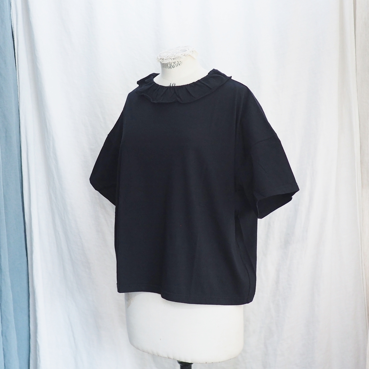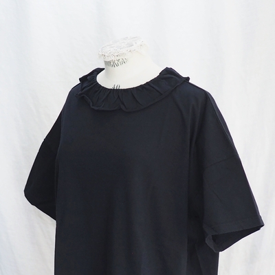 ホームスパン 30/1天竺 フリルカラー 半袖Tシャツ #6563 ブラック
