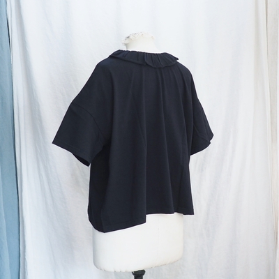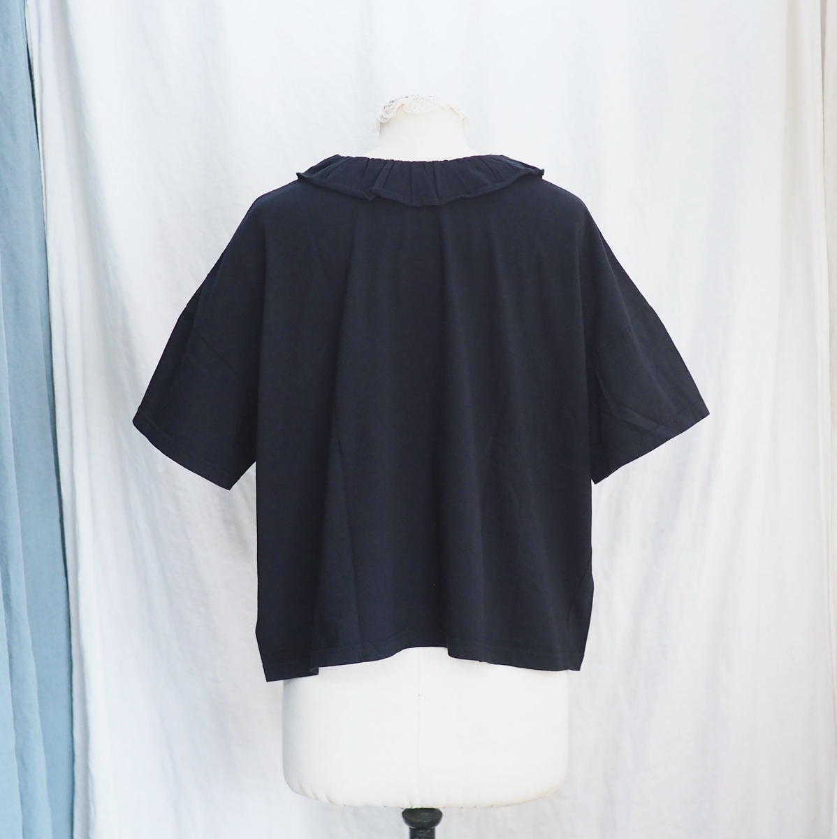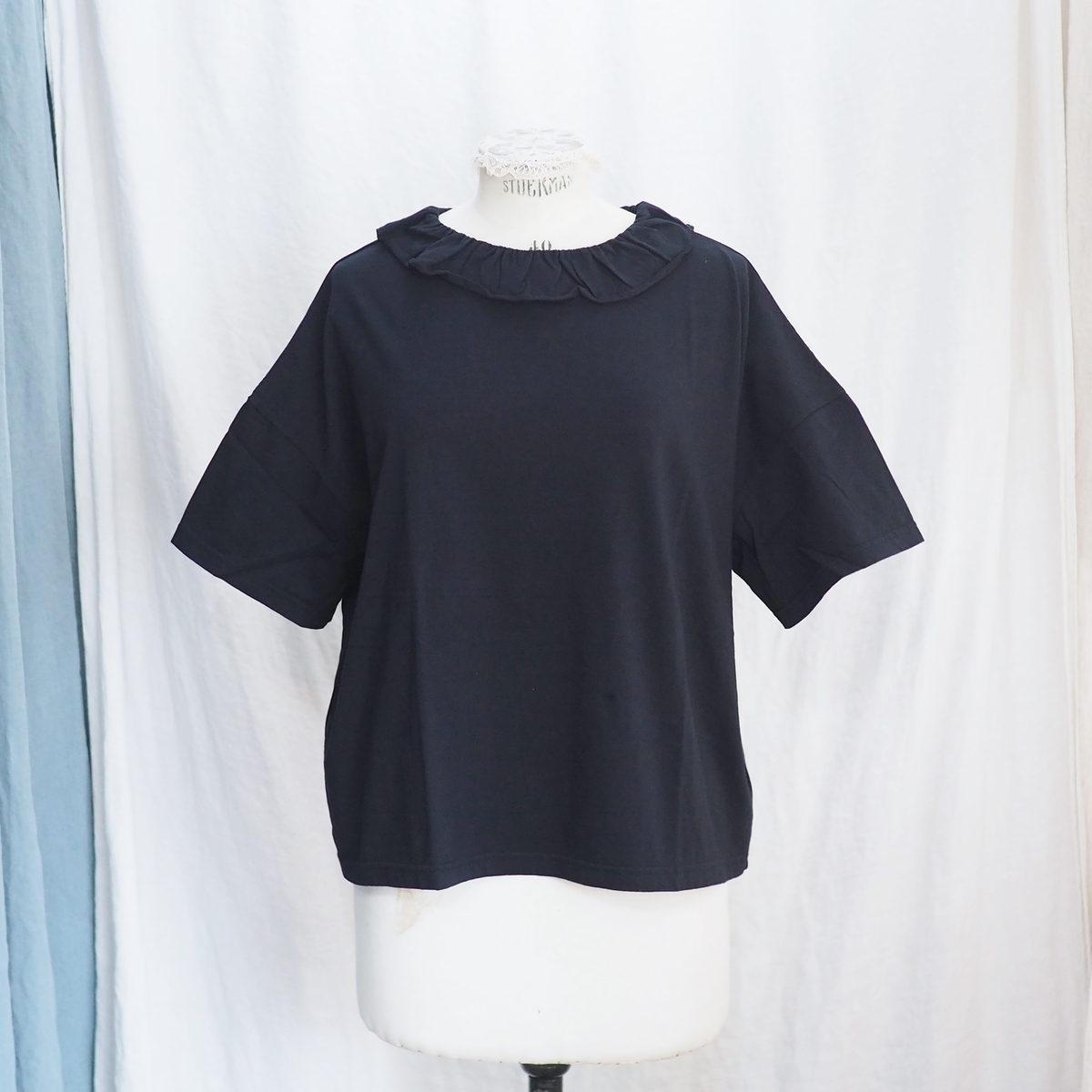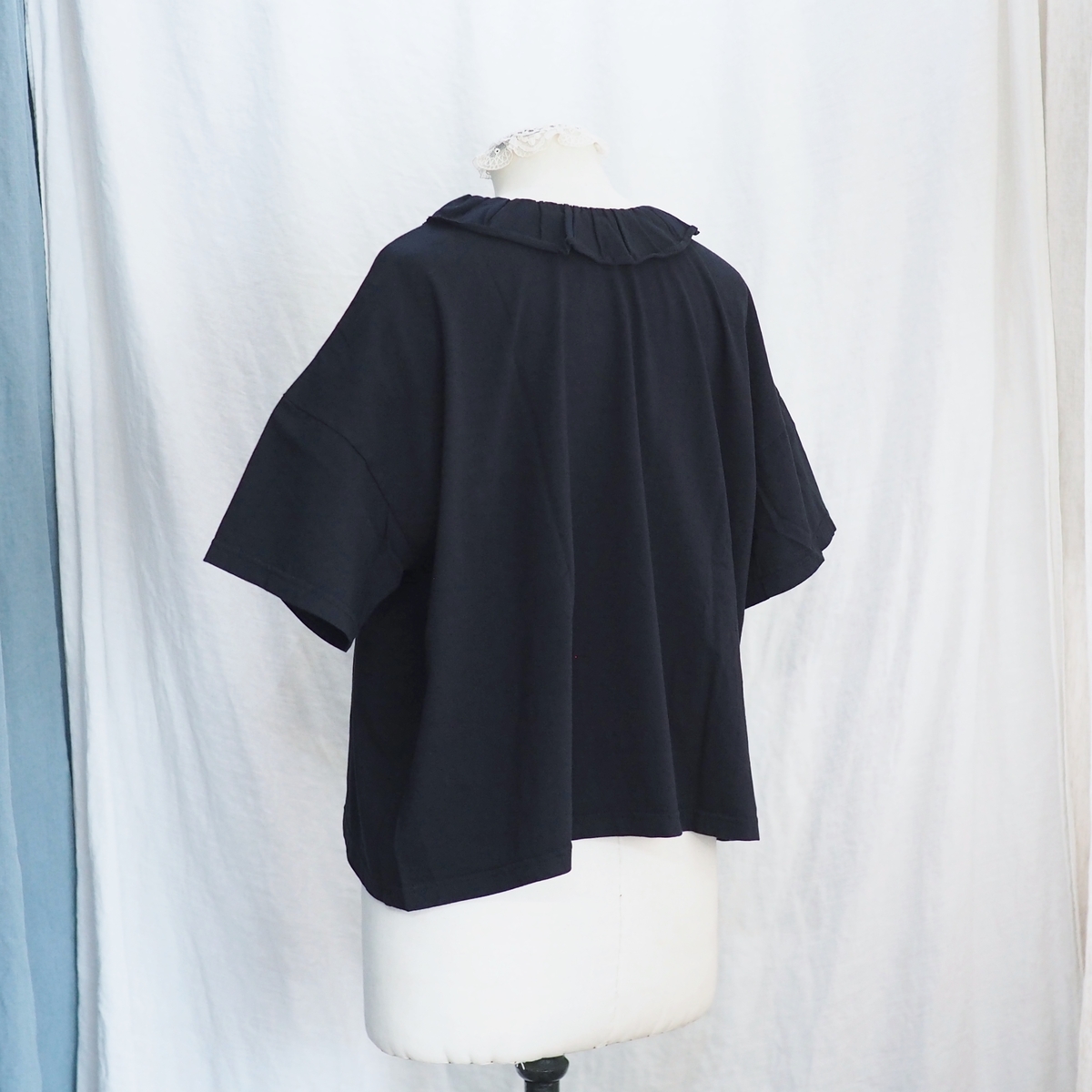 ホームスパン 30/1天竺 フリルカラー 半袖Tシャツ #6563 ブラック
