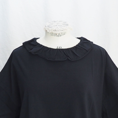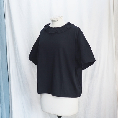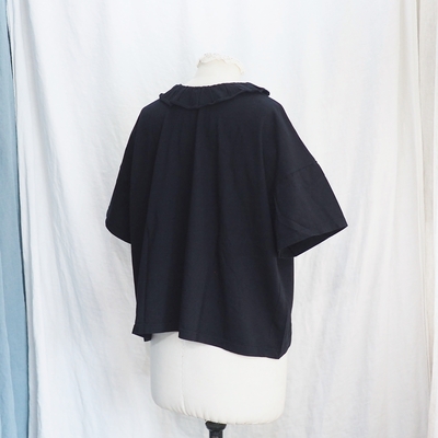 • ホームスパン 30/1天竺 フリルカラー 半袖Tシャツ #6563 ブラック