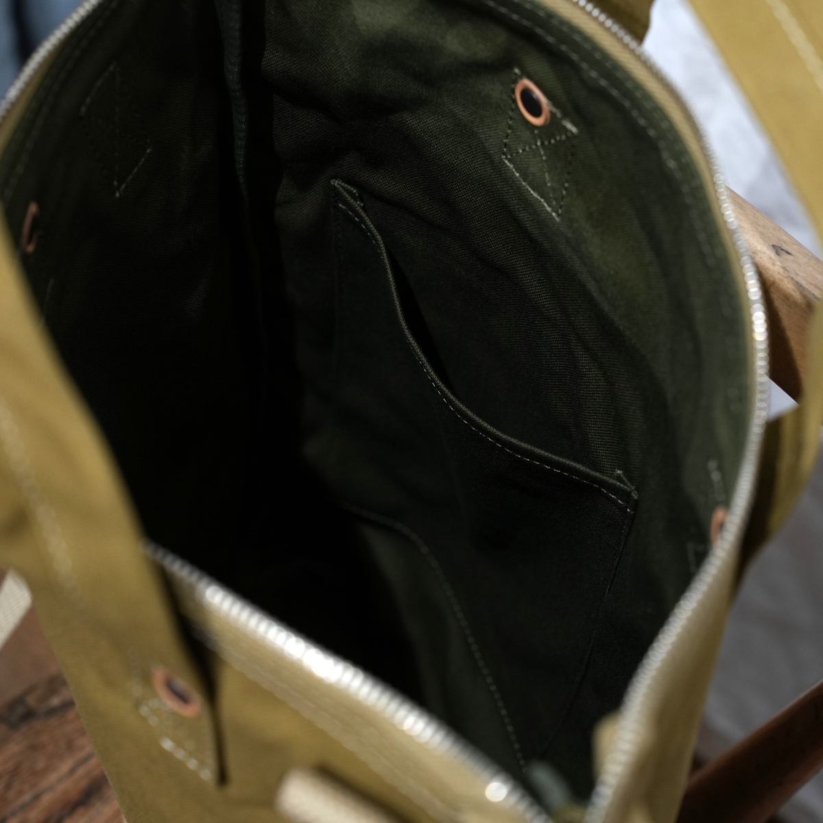 素材は、コットン100%のオリジナル10号キャンバス、パラフィンコーティング。