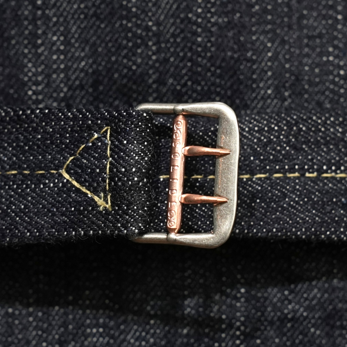 素材は、コットン100%のオリジナル 14oz インディゴ デニム。