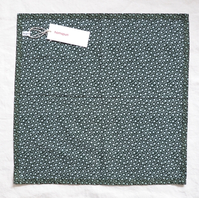 • ホームスパン 小花プリント ハンカチ #8309 グリーン