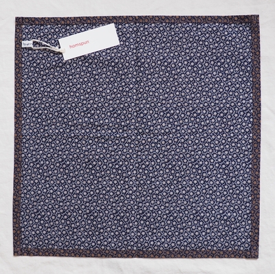 • ホームスパン 小花プリント ハンカチ #8309 ネイビー
