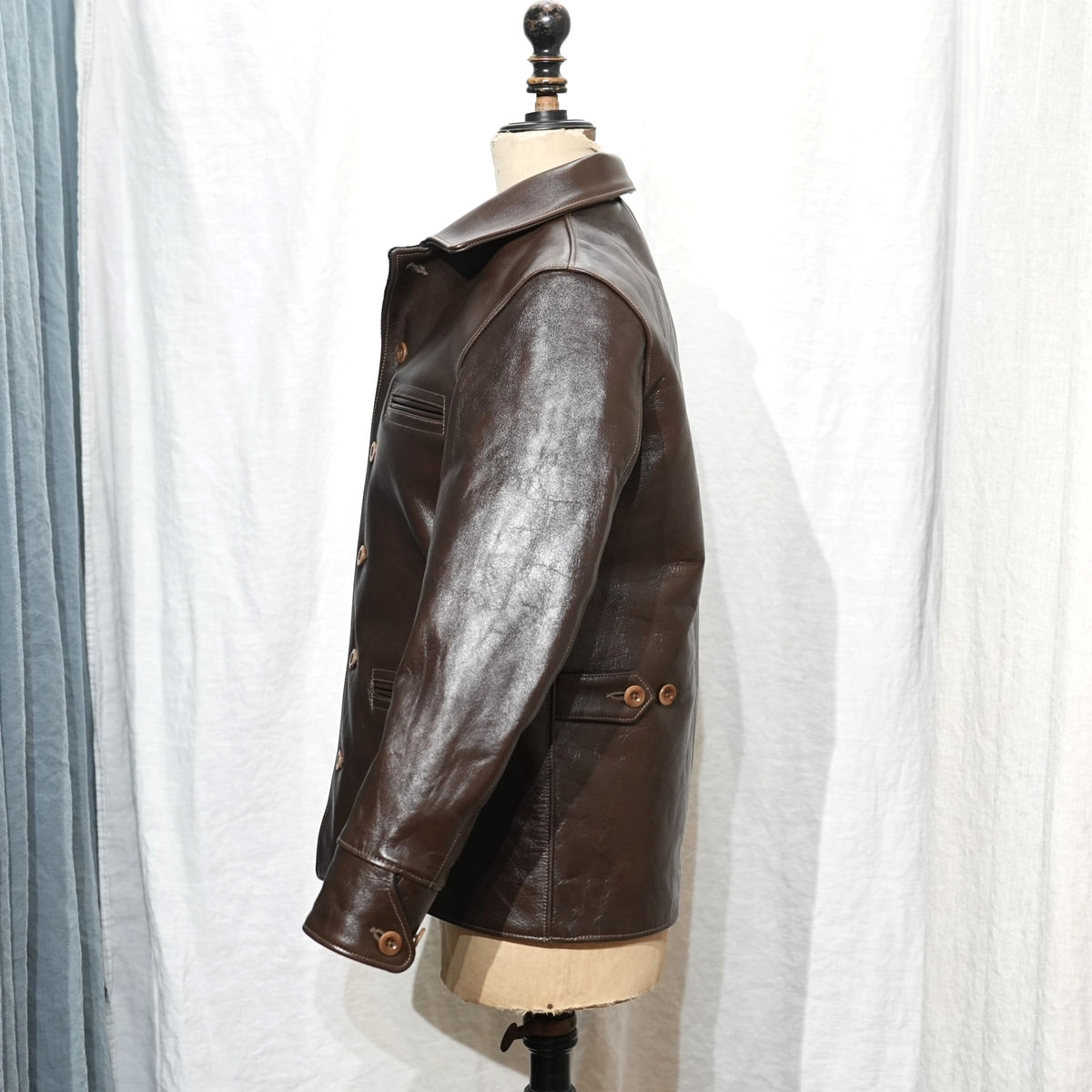 1920年~1930年代にポピュラーだったシングルブレストの革製ハーフコートは、生粋のワークウェアでした。