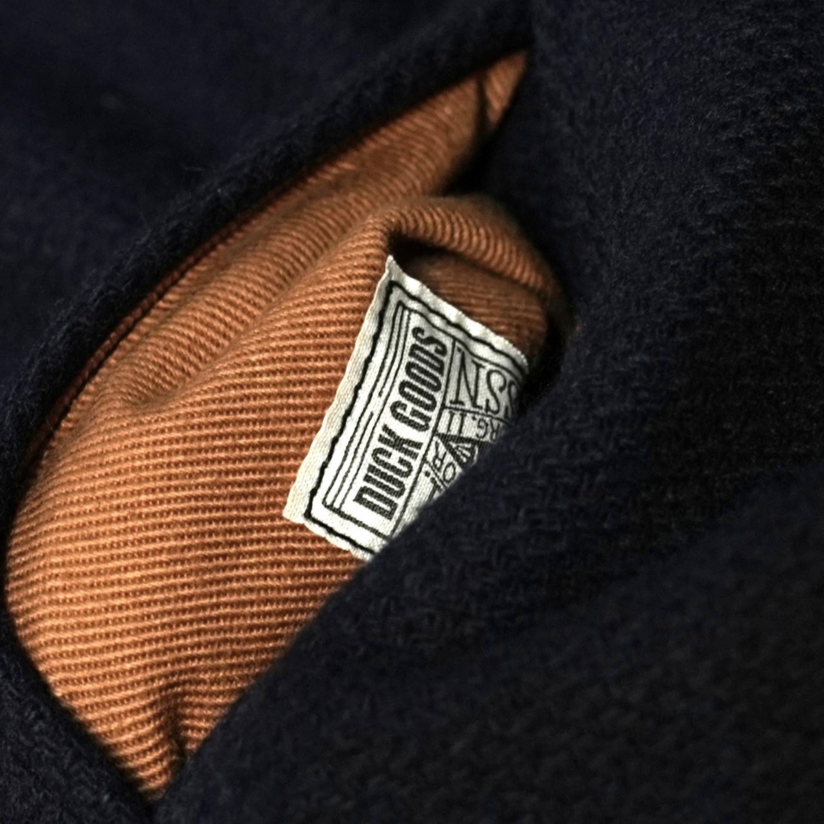 身頃裏には、ウール80%、ポリエステル10%、アクリル5%、ナイロン5%のヘヴィーオンス オイルカット メルトンライニングで保温性を向上。