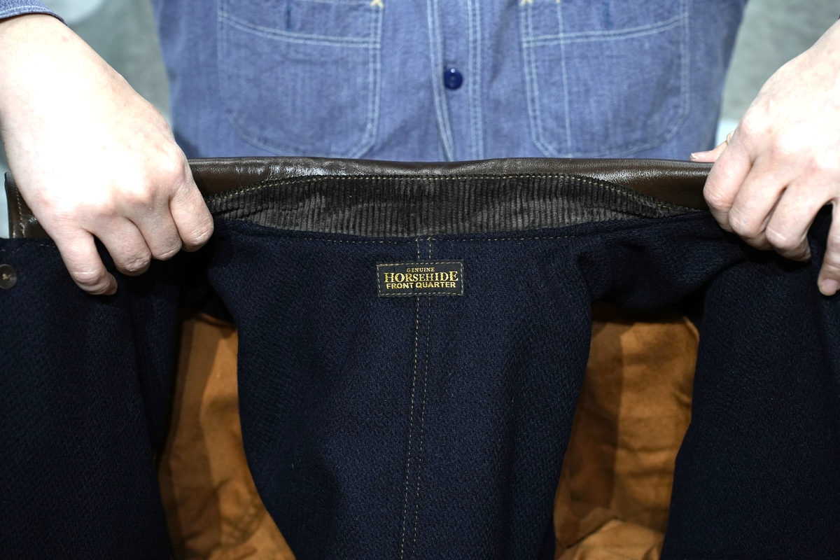 馬革をふんだんに使用し、更には保温性を担保するウールメルトンライニングと組み合わせることにより、他に類を見ない耐久性と防風性、そして防寒性を高次元で満足させました。