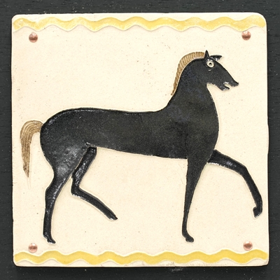 『馬』陶板、バックボード付き