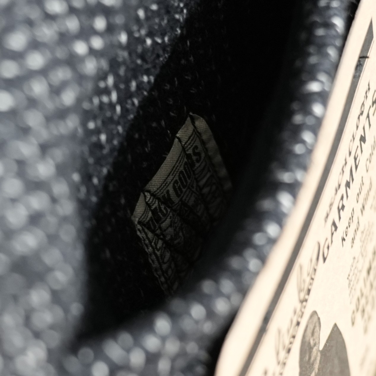 首裏に、ブランド織りネームとサイズタグ。
