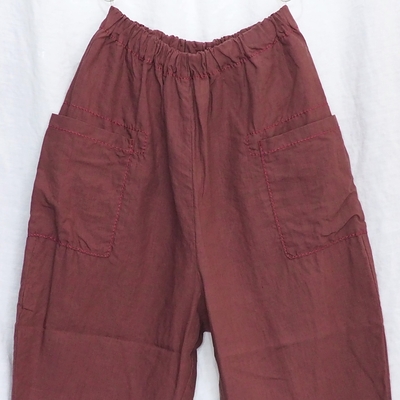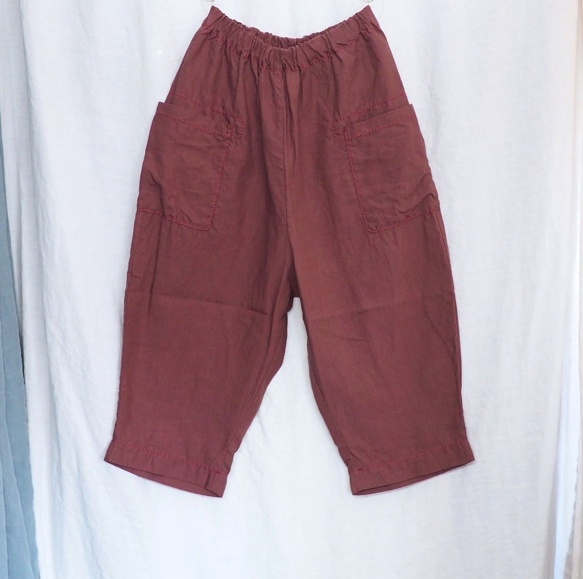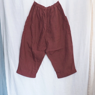 ホームスパン リネンバイオ 八分丈 パンツ #3406 アズキ